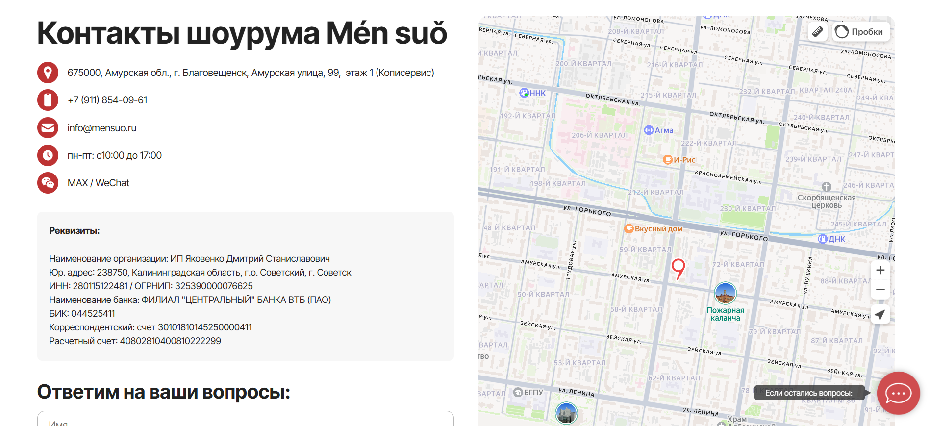 Контакты шоурума Mén suǒ